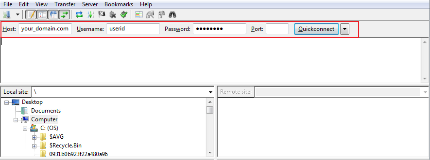 You can enter this information into the fields at the top of the Filezilla program and click “quick connect”. You should now be connected to your web server.